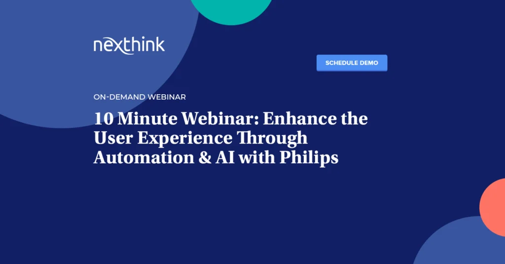 In this 10-minute webinar, learn how Philips and DXC leverage automation to improve the efficiency of employees, and get a sneak peak of their vision for combining DEX and AI to create a seamless digital workplace.