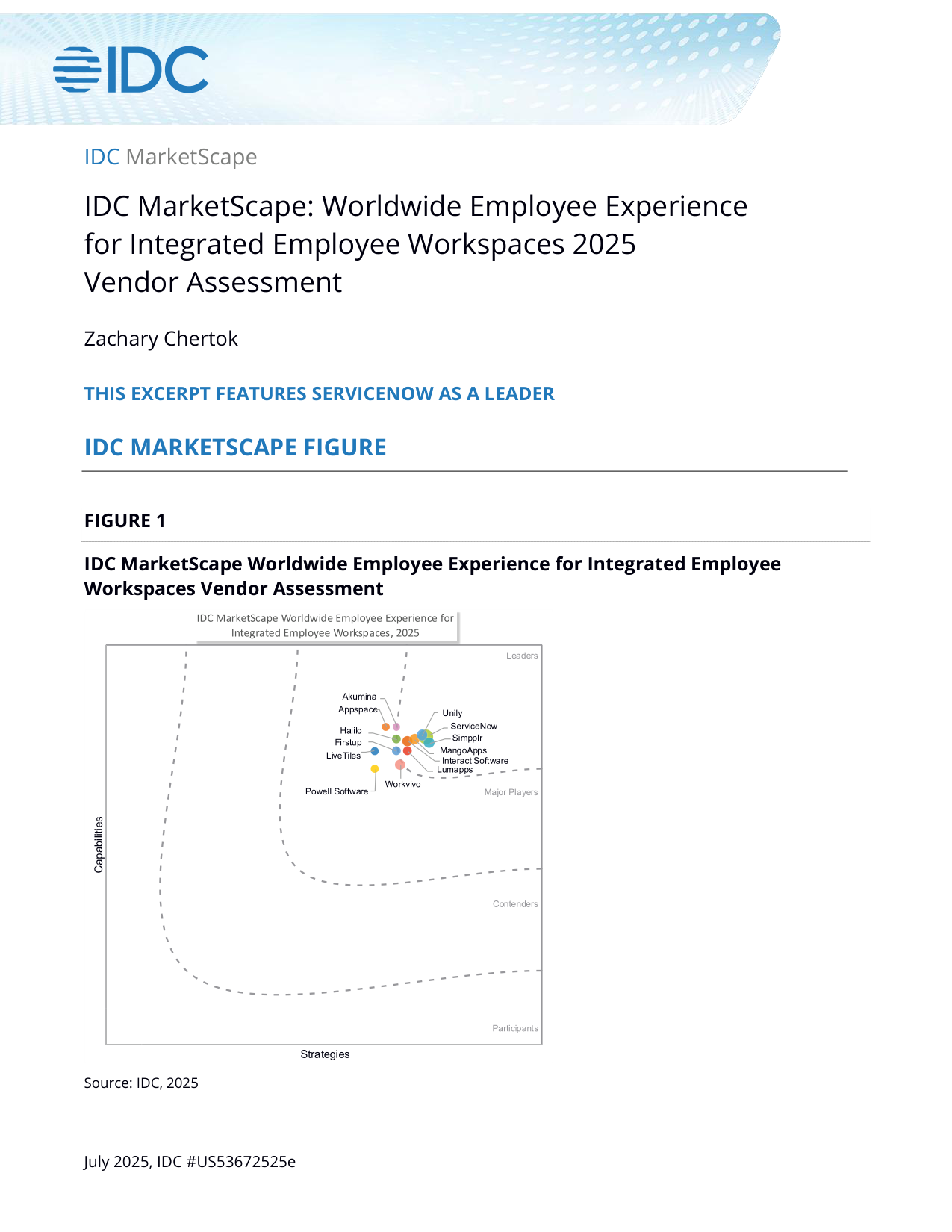 ServiceNow has been recognized as a leader in the 2025 IDC MarketScape: Worldwide Employee Experience for Integrated Employee Workspaces.